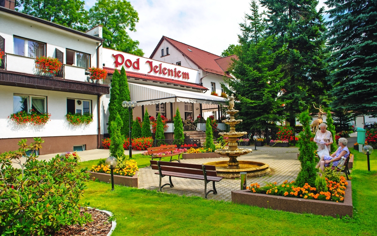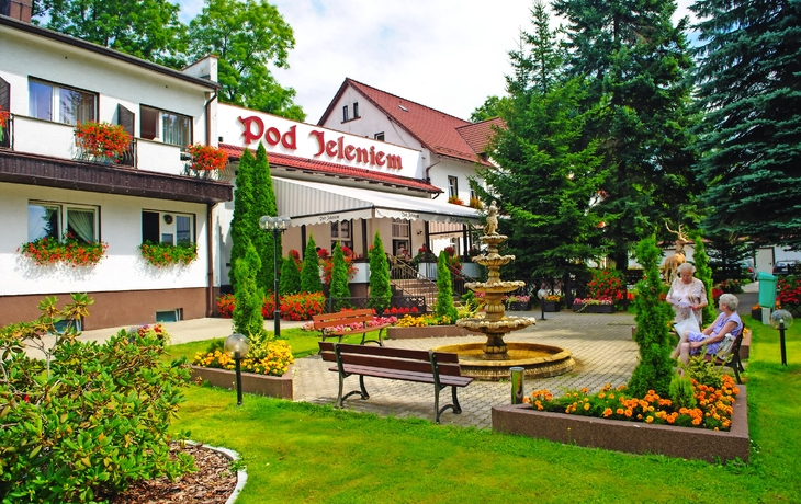 Sie wohnen im 3-Sterne-Hotel „Pod Jeleniem“ in Bad Flinsberg, eingebettet in eine ruhige, waldreiche Umgebung, nur etwa 3 Kilometer vom charmanten Ortszentrum entfernt. Mit den hoteleigenen Minibussen erreichen Sie das Zentrum schnell und bequem. Die schlicht gehaltenen, zweckmäßigen Zimmer des gut geführten Mittelklassehotels sind ausgestattet mit Dusche/WC, Telefon, Fernseher, WLAN sowie einem Safe. Im Haus finden Sie auch einen Lift. Das Restaurant bietet am Nachmittag Kaffee und Kuchen an. Zu den Freizeiteinrichtungen gehören: Fitnessraum, Kaminsaal, Restaurant, Internet-Terminal, Schwimmbad und Sauna. Ein großer Teil der Behandlung findet direkt in den hoteleigenen Kureinrichtungen statt. Hier finden Sie auch eine Spa-/Kosmetikabteilung mit Friseur (gegen Gebühr).