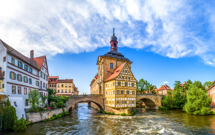 Zu den herausragenden Sehenswürdigkeiten im historischen Stadtkern, die Teil des Rundganges sind, gehören der Dom, die Alte Hofhaltung und Neue Residenz mit Rosengarten, das Alte Rathaus und „Klein Venedig,“ das beliebteste Fotomotiv Bambergs.