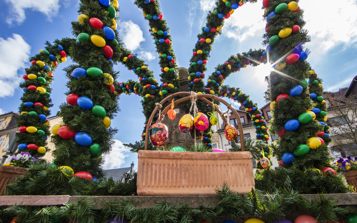 Bamberg und das Umland reihen sich ein in die Tradition prachtvoll verzierter Osterbrunnen, die Frankens Städte und Dörfer mit ihrem feierlich-bunten Farbenspektakel von einer besonders schönen Seite zeigen. Sie haben Zeit für die Bamberger Passionskrippen, die während der Osterzeit in der Maternkapelle zu sehen sind, und genießen sowohl Frühlingsausflüge nach Coburg und in die Fränkische Schweiz, wo die Osterbrunnen ihren Ursprung haben, als auch ein festliches Osterdinner im Hotel.