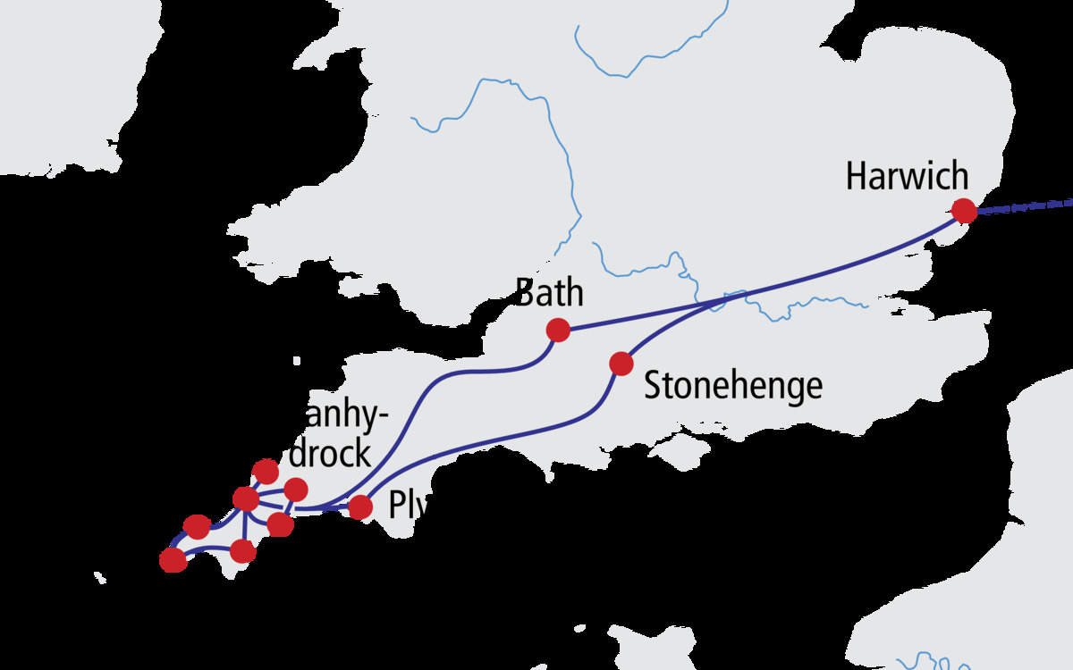 Die Schönheit der Küste zwischen Moorlandschaften und Klippen entdecken Sie rund um die Penwith-Halbinsel. Sie besuchen Trebah Garden, einen Schluchtgarten der zu den 80 schönsten Gärten der Welt zählt. Über St. Ives erreichen Sie Land´s End, den westlichsten Punkt Englands. Über Penzance geht es zur tideabhängigen Insel St. Michael´s Mount.