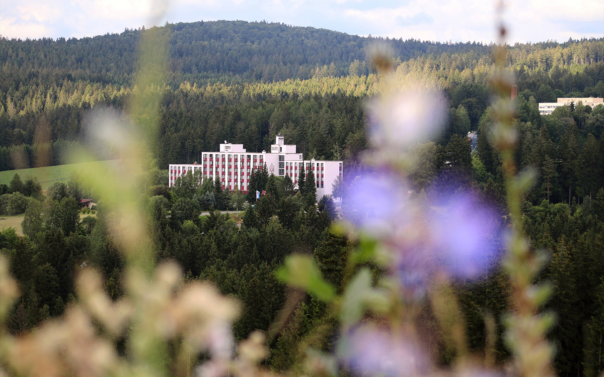 In der Nordostecke Bayerns erhebt sich das Fichtelgebirge. Schöne Fichten- und Kiefernwälder sowie die auf den Bergrücken durch Verwitterung entstandenen Felslabyrinthe und Felsmeere geben ihm einen besonderen Reiz. Zu Füßen des Ochsenkopfs (1.024 m) und nahe des Schneeberges, der mit 1.053 m höchsten Erhebung, liegt der kleine und gemütliche Ort Bischofsgrün.