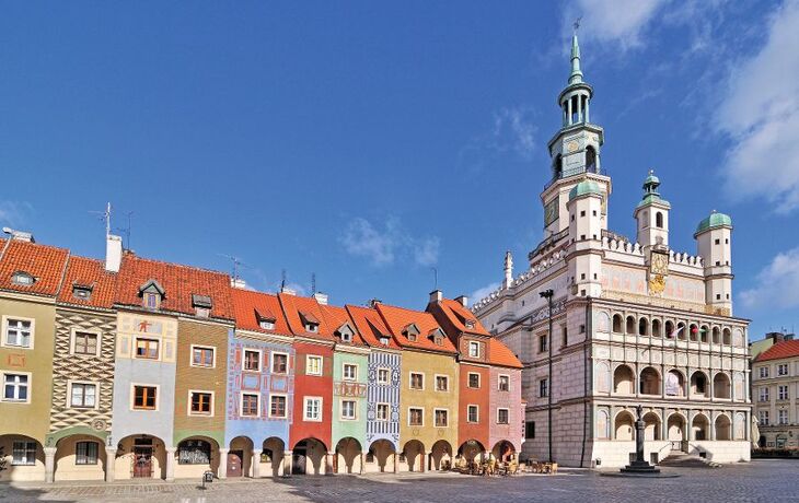 Das erste Reiseziel ist Posen. Zu den Attraktionen gehört der Alte Markt (Stary Rynek), der mit seinen farbenfrohen Krämerhäusern und dem historischen Rathaus berühmt und ein beliebter Treffpunkt ist.