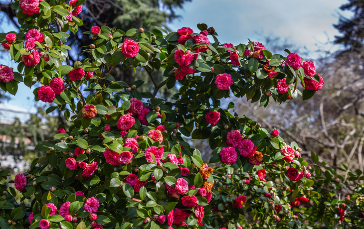 Sie besuchen das Bergdorf Sant'Andrea di Compito. Es gilt als das Zentrum der ältesten Kamelienbäume des Landes. Hier sehen Sie ein großartiges Farbenspiel und erleben betörende Düfte, die sich beim Rundgang durch die kleinen mittelalterlichen Straßen überall ausbreiten. Es lohnt ein Blick in die hübschen Ziergärten. Allein der Kameliengarten beheimatet siebenhundert verschiedene Sorten der Teepflanze und in den Parks der Villa Orsi und Torrigiani haben einige sogar Baumhöhe erreicht.