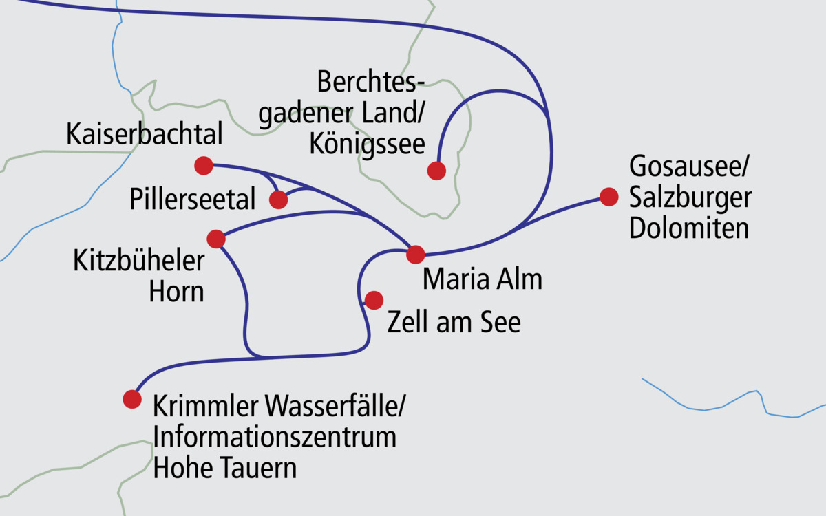 • Reiseleitung Ausflüge Salzburger Dololmiten, Pillerseetal und Krimmler Wasserfälle