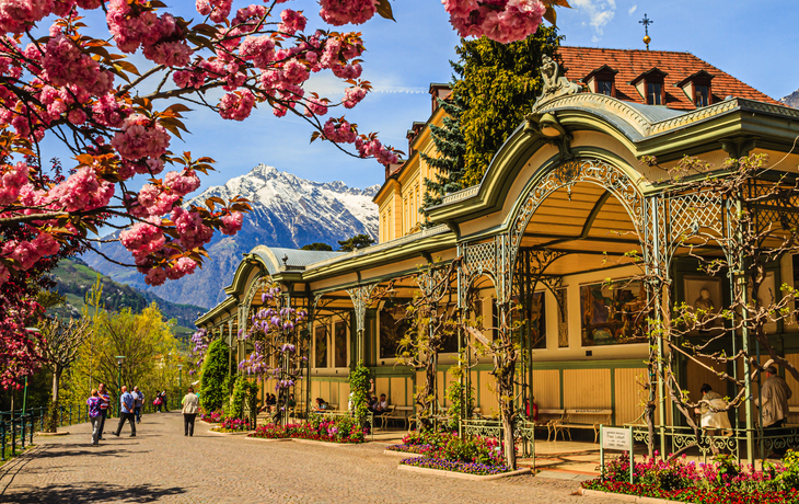 Sie lernen den bekanntesten Kurort Südtirols im Rahmen einer Stadtführung kennen. Mittelalterliche Gassen, Stadttore und -mauern, Gebäude im Jugendstil, Torbögen, verwinkelten Hinterhöfen und abenteuerlichen Treppenaufgängen sowie das Kurhaus und jede Menge mediterrane Vegetation erwarten Sie. Zudem besuchen Sie die Gärten von Schloss Trauttmansdorff, die im Frühling mit Hunderttausenden von Tulpen, Narzissen und Kaiserkronen in einem bunten Farbenmeer erstrahlen.