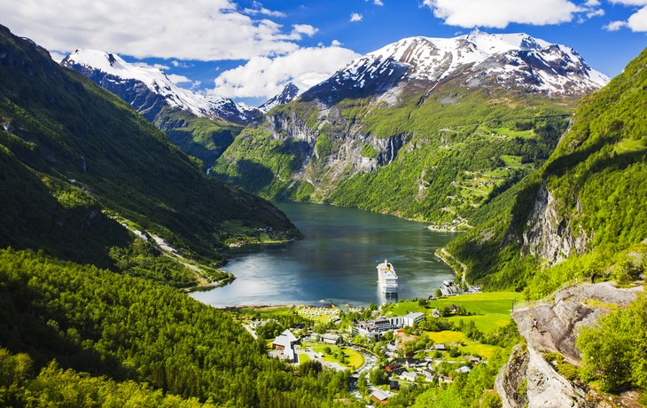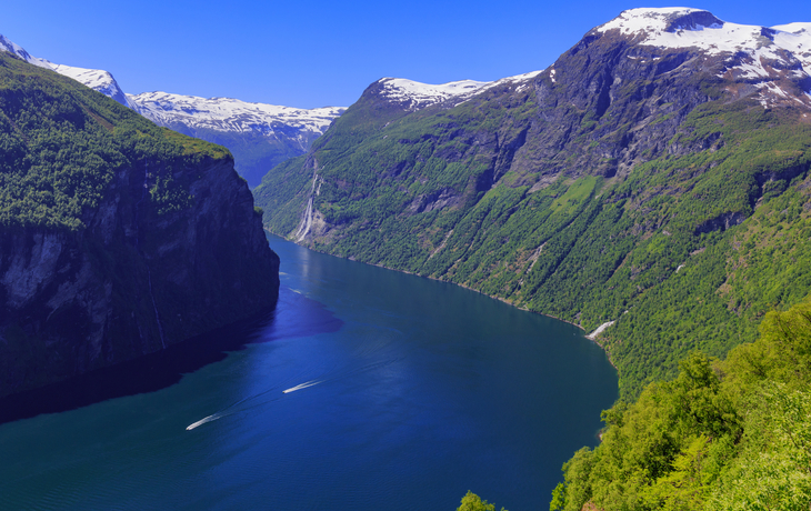 Am Vormittag steht eine Schifffahrt auf dem Geirangerfjord auf dem Programm. Steile Ufer mit einsam gelegenen Höfen und schroffe Felswände ragen zu beiden Uferseiten empor und bilden mit den berühmten Wasserfällen "Brautschleier", "Sieben Schwestern" und "Freier" ein einmaliges Landschaftsbild. Anschließend setzen Sie Ihre Reise zum Nordfjord fort, wo Sie einen Abstecher zum bekannten Briksdalsbreen, dem größten Festlandgletscher Europas, machen. Nach einem Mittagessen fahren Sie mit kleinen Elektroautos (Troll-Auto) zur Gletscherzunge. Am frühen Abend erreichen Sie den Sognefjord, den "König der Fjorde". (1 Übernachtung)
