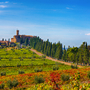 Die Hügelkette der Colline del Chianti sind im Zentrum der Toskana und seit Jahrhunderten Anbaugebiet des Chianti-Weins. Sie gilt als das Herz der Toskana und ist zugleich der Inbegriff toskanischer Landschaften. Über Castellina durchqueren Sie zwischen Radda und Greve hügelige Landschaften mit Olivenhainen, Zypressen, Weinbergen und Landgütern. Hier werden Sie zu einer Weinprobe einkehren.
