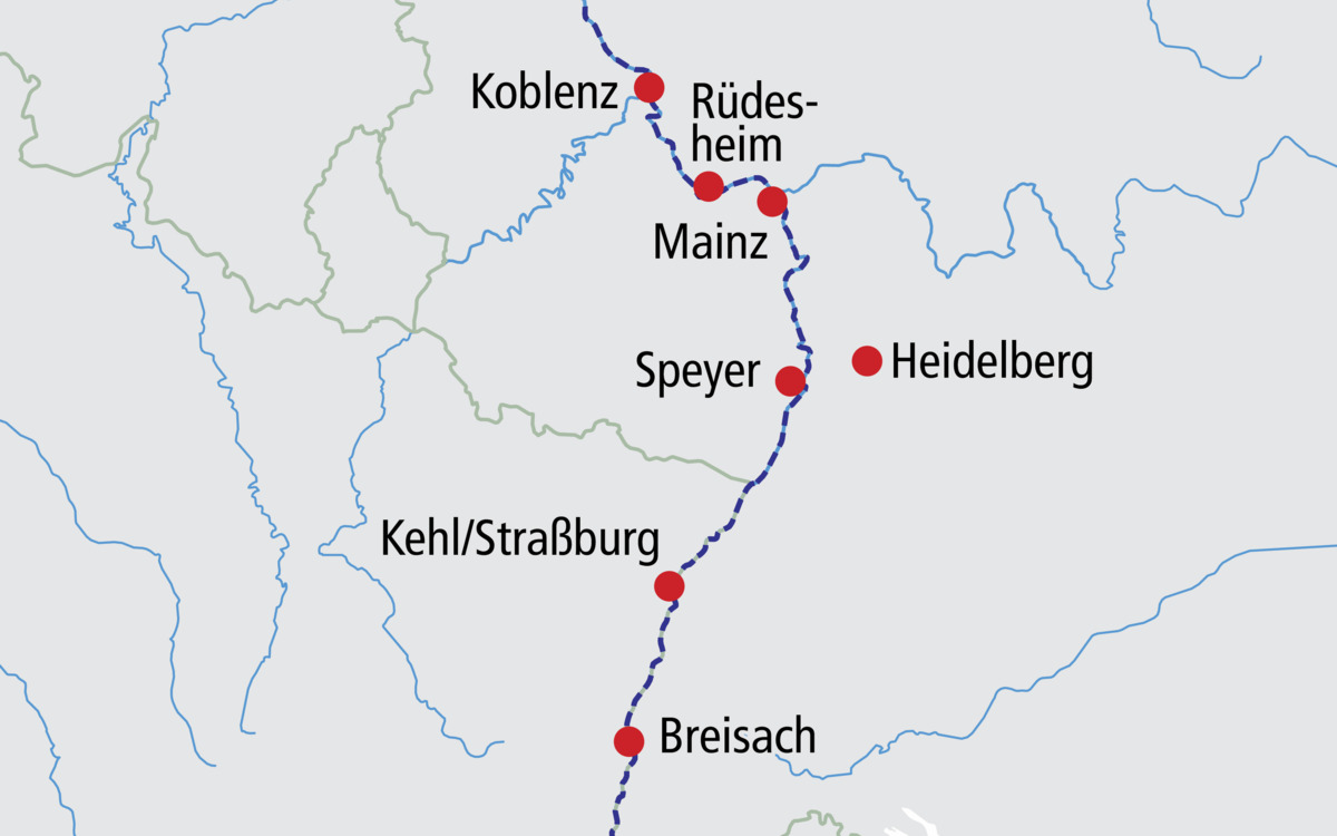 Entdecken Sie auf dieser Flusskreuzfahrt romantische Ortschaften wie Rüdesheim und Breisach, Geschichtsträchtiges in Speyer, Mainz und Koblenz sowie die beeindruckenden Städte Basel und Straßburg. Im Reisepreis sind bereits viele Annehmlichkeiten des A-ROSA Premium alles inklusive Paketes enthalten: Getränke wie Tee, Kaffee, Kaffeespezialitäten zum Frühstück, Wasser, Softdrinks und eine Auswahl an Bieren und Weinen innerhalb der Baröffnungszeiten, kostenlose Bademantelnutzung sowie Vorteilspreise auf alle Anwendungen im SPA-ROSA.