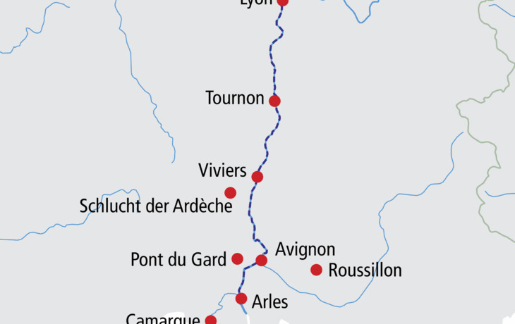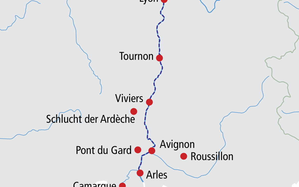Die Schönheit der Rhône, ihrer Ufer und ihrer Landschaft erwartet Sie. Entdecken Sie monumentale Bauwerke wie das Amphitheater von Arles und den Pont du Gard, die einzigartigen Landschaften der Camargue, der Ardèche und der Ockerfelsen und lassen Sie sich beeindrucken von den wunderschönen Altstädten Lyons und Avignons. Unser Bus begleitet Sie auf dem Landweg und steht Ihnen für das Ausflugsprogramm zur Verfügung. Im Reisepreis sind bereits viele Annehmlichkeiten des A-ROSA Premium alles inklusive Paketes enthalten: Getränke wie Tee, Kaffee, Kaffeespezialitäten zum Frühstück, Wasser, Softdrinks und eine Auswahl an Bieren und Weinen innerhalb der Baröffnungszeiten, kostenlose Bademantelnutzung sowie Vorteilspreise auf alle Anwendungen im SPA-ROSA.