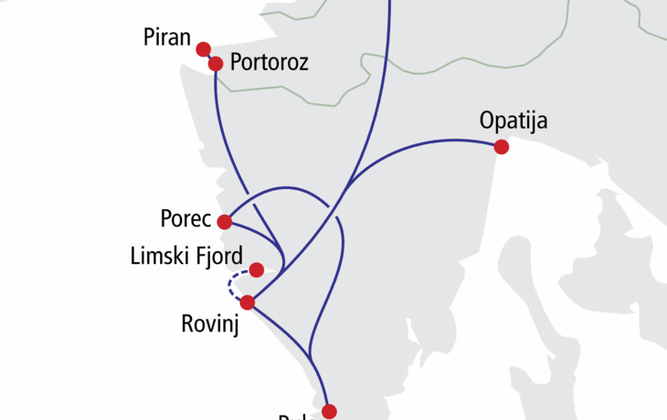 Es ist die Verflechtung von Tradition und Moderne, dem rustikalen Landesinneren und der atemberaubenden Küste, die jeden Urlauber schwärmen lässt, der Istrien schon einmal besucht hat. Lernen Sie die abwechslungsreiche Halbinsel bei einer ganztägigen Rundfahrt kennen. Sie fahren entlang der Küste, besuchen faszinierende Städte, wie Pula und Porec, und lassen sich von der hügeligen Landschaft, den eleganten Zypressen, den urigen Steinhäusern und den uralten Bergdörfern des romantischen Hinterlands in den Bann ziehen.
