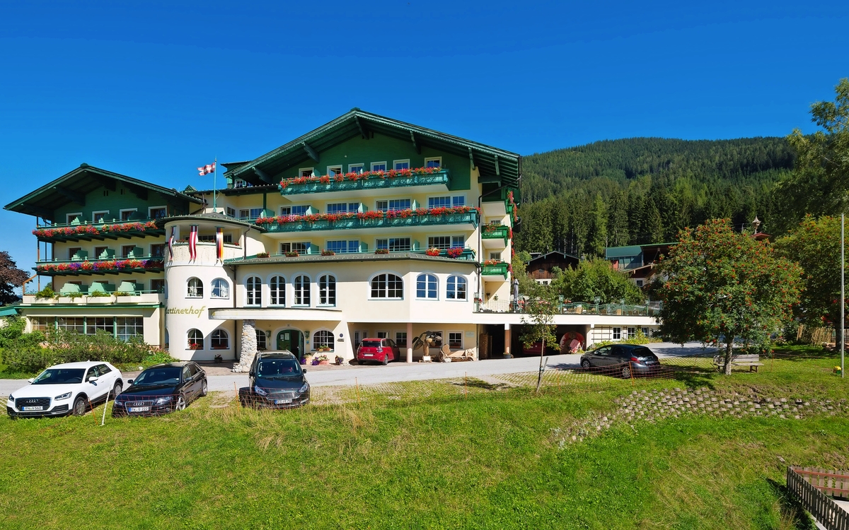 Sie wohnen im sehr guten Familienhotel Martinerhof, das unter persönlicher Leitung der Familie Rettenbacher steht. Der Martinerhof liegt etwas abseits der Salzburger Dolomitenstraße zwischen Tennengebirge und Dachstein auf einem Sonnenplateau des oberen Lammertals. Die geschmackvoll ausgestatteten Zimmer verfügen alle über Dusche/WC, Telefon, TV und Safe. Zu den Einrichtungen des Hotels gehören verschiedene Speiseräume, ein Wintergarten, eine Tagesbar und ein Lift. Zum Entspannen und Erholen gibt es ein Hallenbad und ein beheiztes Freibad, eine Sauna und ein Dampfbad. Das All-inclusive-Angebot umfasst: Getränke von 9:00 - 21:00 Uhr (Softdrinks, eine Auswahl an Weinen, Bier vom Fass, Weizenbier, Kaffeespezialitäten, Tee und Kakao), Lunchbuffet 12:00 - 16:30 Uhr bzw. Lunchpaket für Tagesausflüge und tagsüber Obstauswahl.