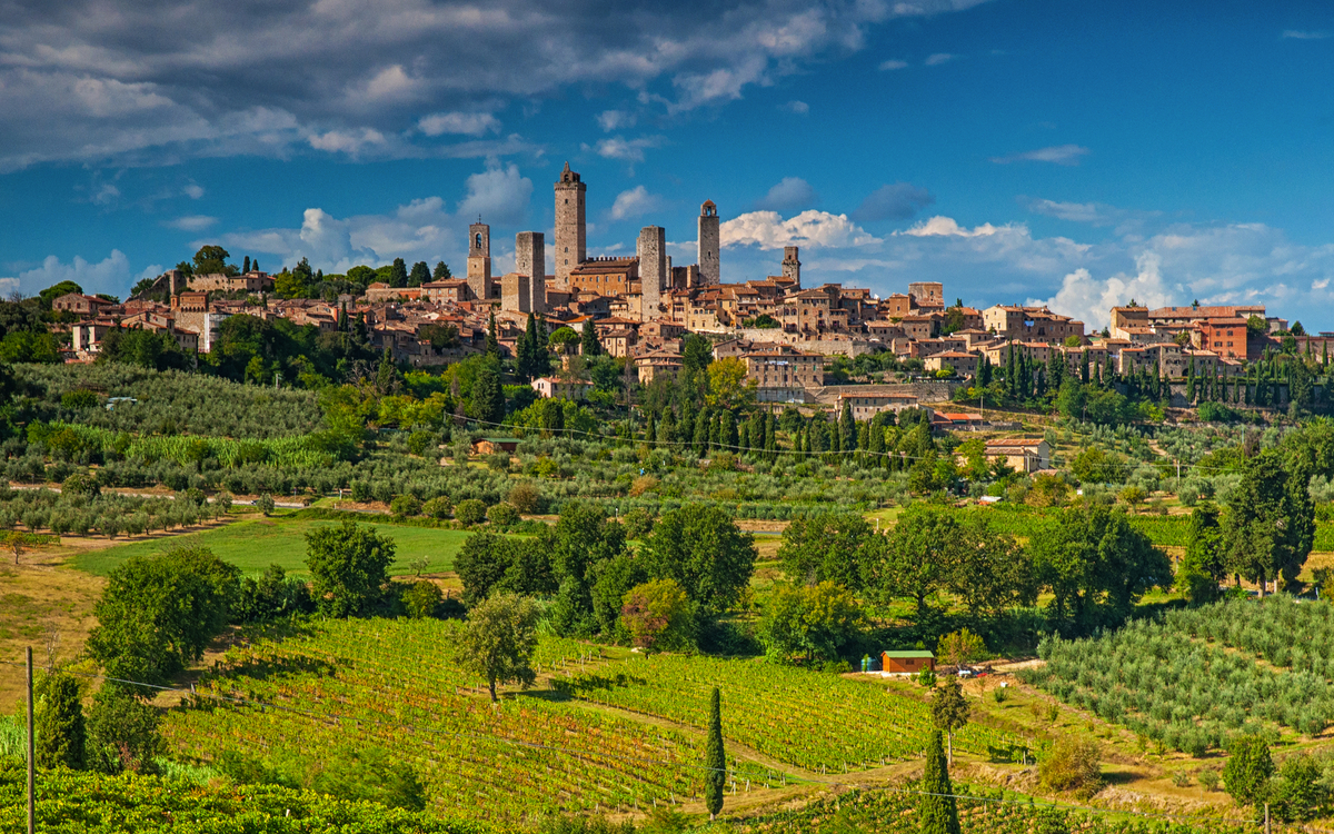 Sie fahren nach San Gimignano, deren markante 13 Türme schon von weitem sichtbar sind und der Stadt den Beinamen „Manhatten der Toskana“ geben. Die malerisch gelegene, mittelalterliche Stadt bietet Ihnen einiges zum Entdecken. Außerdem genießen Sie noch eine Weinprobe und können sich von der ausgezeichneten Qualität überzeugen. Weiter geht es in den hoch über dem Cecina-Tal liegenden Ort Volterra. Der mittelalterliche Ort bietet eine herrliche Aussicht auf das Hügelland. Außerdem besuchen Sie eine Ölmühle und probieren die Leckereien während einer Verkostung.