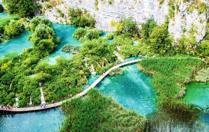 Gemeinsam mit Ihrer Reiseleitung fahren Sie von Zagreb aus zum bekannten Nationalpark Plitvice, der mit seinen Karstseen und Wasserfällen zu den schönsten Naturphänomenen Europas zählt. 16 größere und kleinere Seen sind wie an Perlen aneinandergereiht und die weiße „Seekreide“ am Boden der Seen bricht das Sonnenlicht und lässt das Wasser in wunderschönen blauen und grünen Tönen leuchten. Im Anschluss fahren Sie weiter nach Lozovac. Eine Übernachtung.
