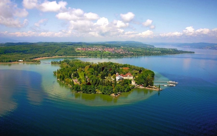 Mit dem Boot fahren Sie auf die idyllische Blumeninsel Mainau und besichtigen die ausgedehnten Park- und Gartenanlagen.
