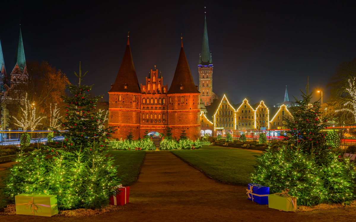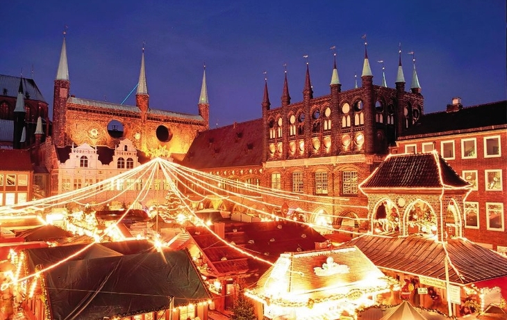 Im bekannten Marzipan-Speicher-Café genießen Sie die berühmte Lübecker Marzipantorte zusammen mit einem köstlich duftenden Kaffee. Der Blick aus den Ladeluken auf den beleuchteten alten Lübecker Hafen und das weltberühmte Holstentor versetzt Sie sicher in Adventsstimmung. Danach steht einem gemütlichen Weihnachtsmarkt-Bummel nichts mehr im Wege. Die Altstadt bietet ein einmaliges Adventserlebnis mit elf Weihnachtsmärkten in der historischen Welterbekulisse. Aufenthalt rund vier Stunden.